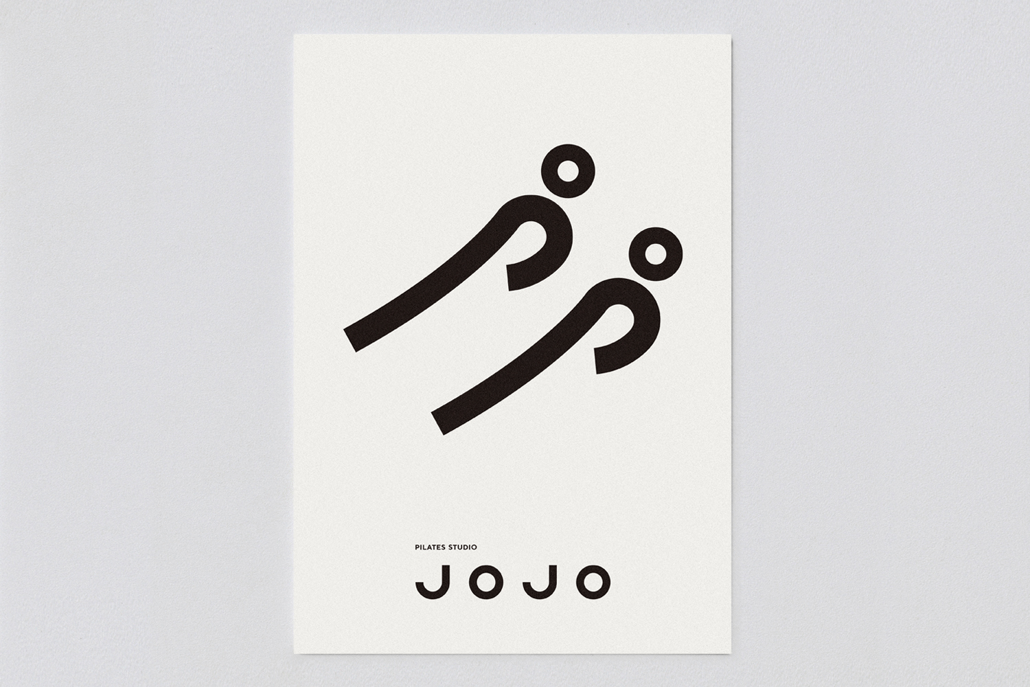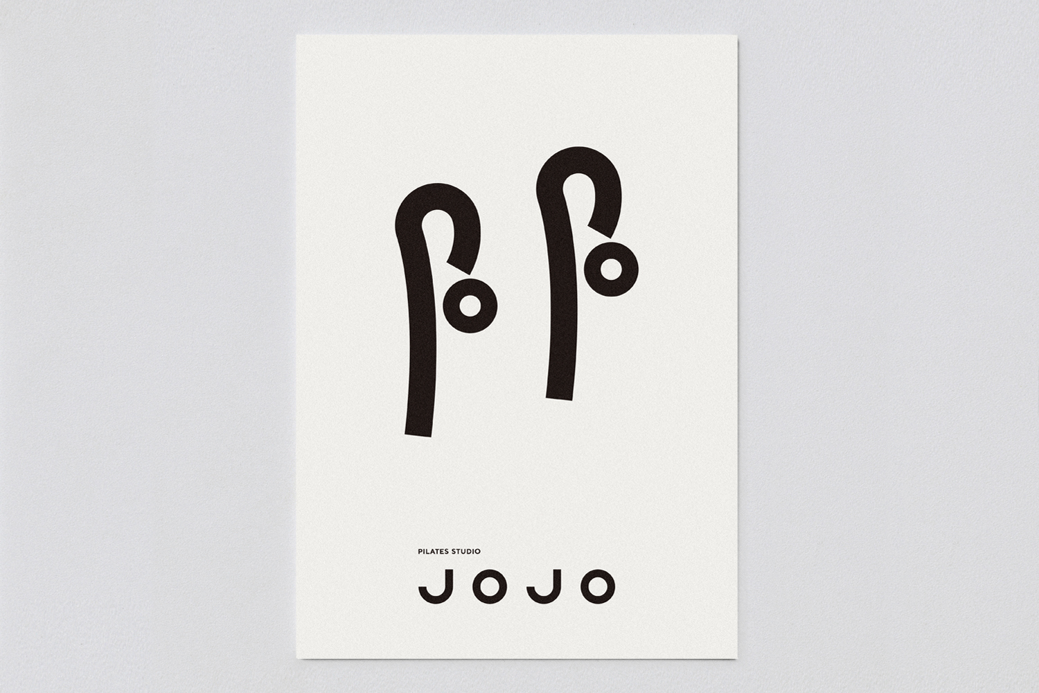 ロゴタイプは均一の太さと広い字間で構成したミニマルな形状はモダンで実直な安心感を与えてくれます。コミュニケーションアイコンとしてピラティスのポーズをする2人の人を「J」と「O」で表現した。「J」の角度を変えるだけで違うポーズになるというユーモアに、ピラティスの楽しさや奥深さをシンクロさせた。