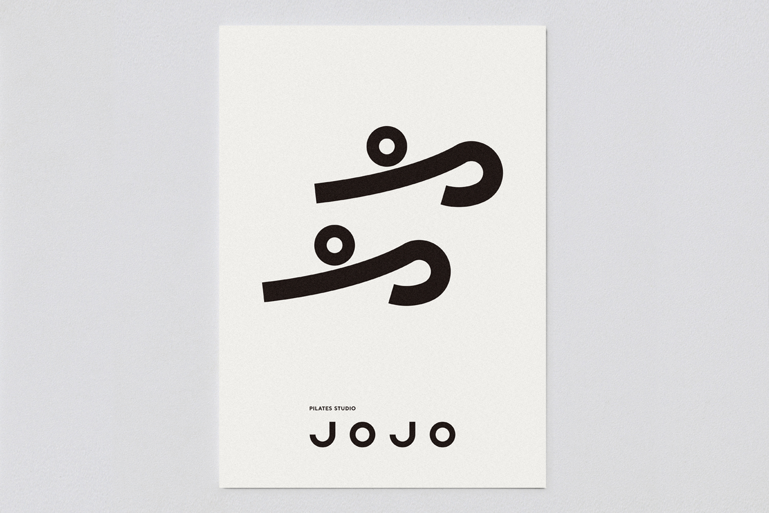 The logotype, composed with uniform stroke width and generous letter spacing, embodies a minimalist form that conveys a modern, honest sense of reassurance. As a communication icon, two people performing Pilates poses are represented by the letters “J” and “O” The humor lies in how simply changing the angle of the “J” creates a different pose—an expression that synchronizes with the joy and depth of Pilates.